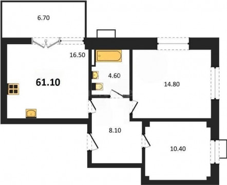 – Количество комнат: 2 шт. (16.7 и 12.4 м2; изолированные).