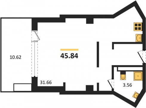 – Площадь кухни: 9.6 м2.